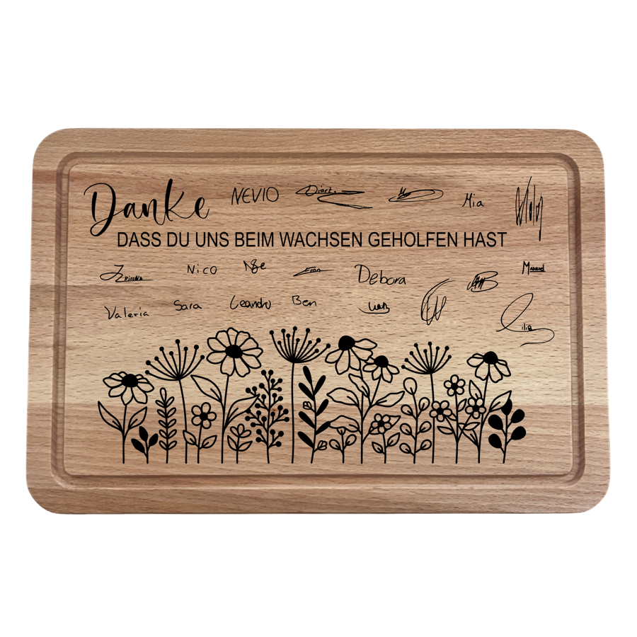 grosses Schneidebrett Blumen mit Unterschriften