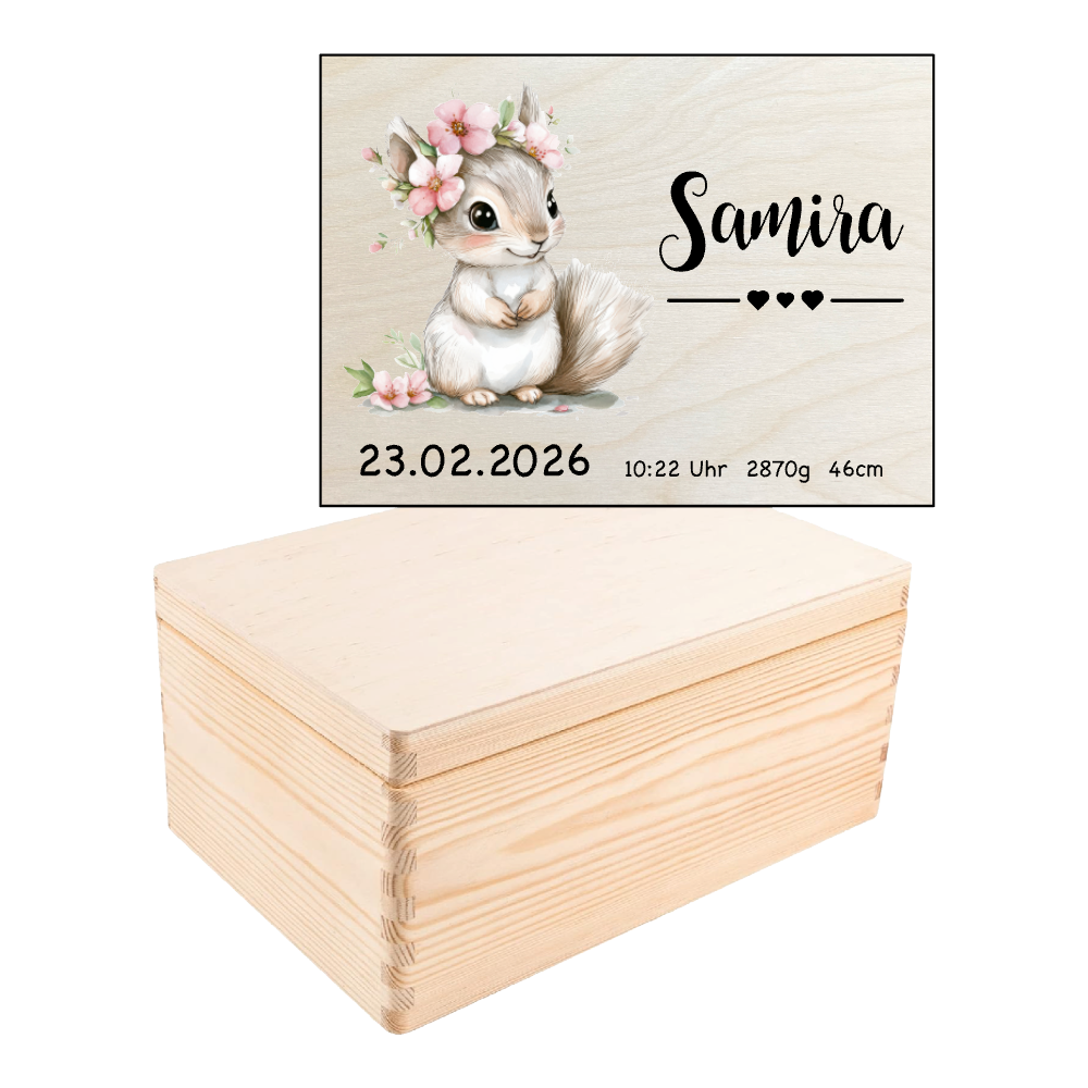 mit dieser ganz individuell gravierten Erinnerungsbox die Platz für vielerlei Andenken aus den ersten Lebensjahren bietet, bleibt die glückliche Zeit der Kindheit für Kind und Eltern auch noch nach Jahrzehnten in der Erinnerung lebendig.