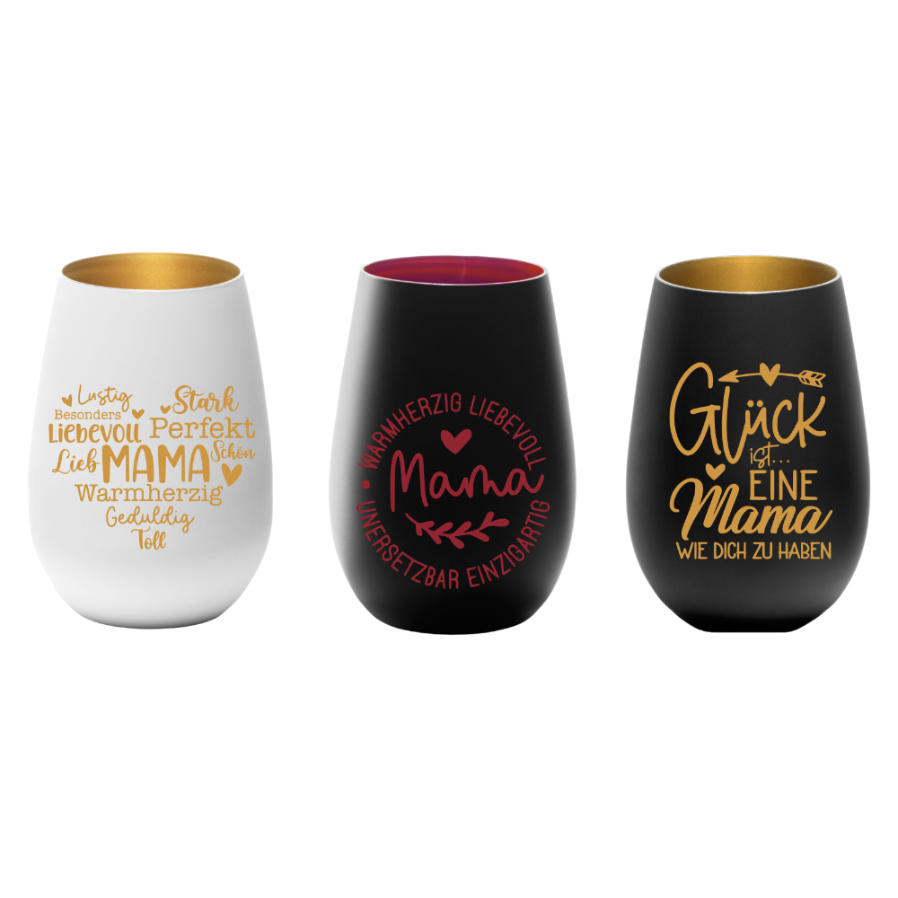 Die Windlichter gibt es in drei Farbvarianten: schwarz/gold, weiss/gold und schwarz/rot
