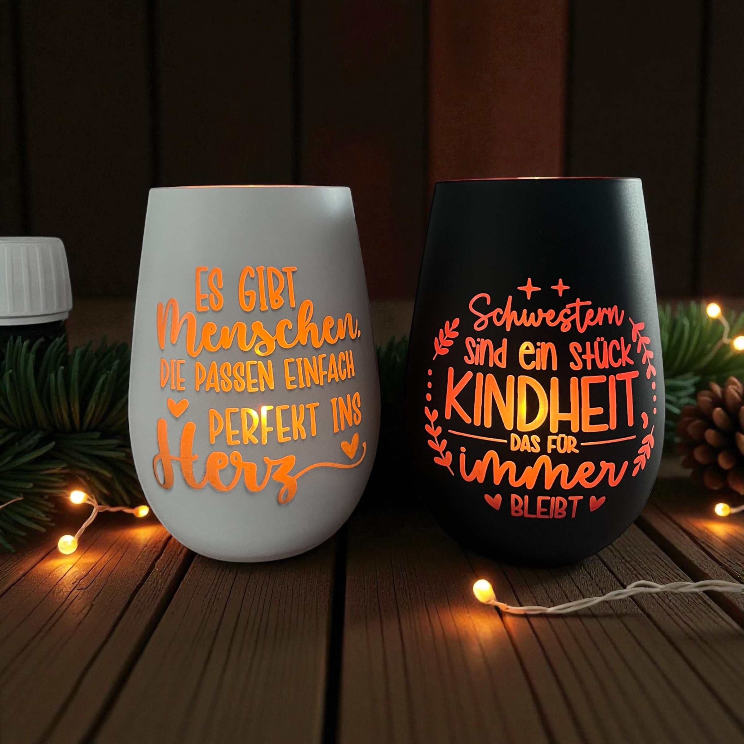 Die wunderschönen hochwertigen Windlichter, werden graviert mit einem schönen Spruch/Motiv nach Wunsch. Wenn die Kerze angezüdet ist, leuchtet der Spruch/Motiv wunderschön.